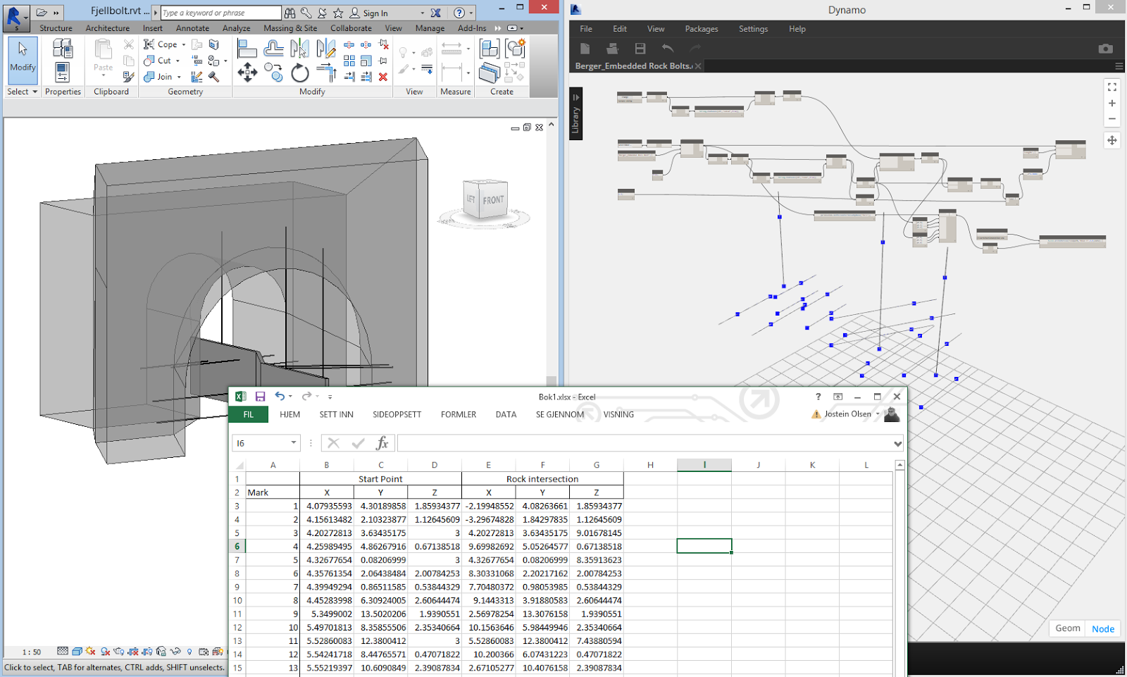 However they came across a challenge when the contractor requested coordinates for all the rock bolts in the project. And not only the starting point but also the point where the bolt would enter the rock surface.